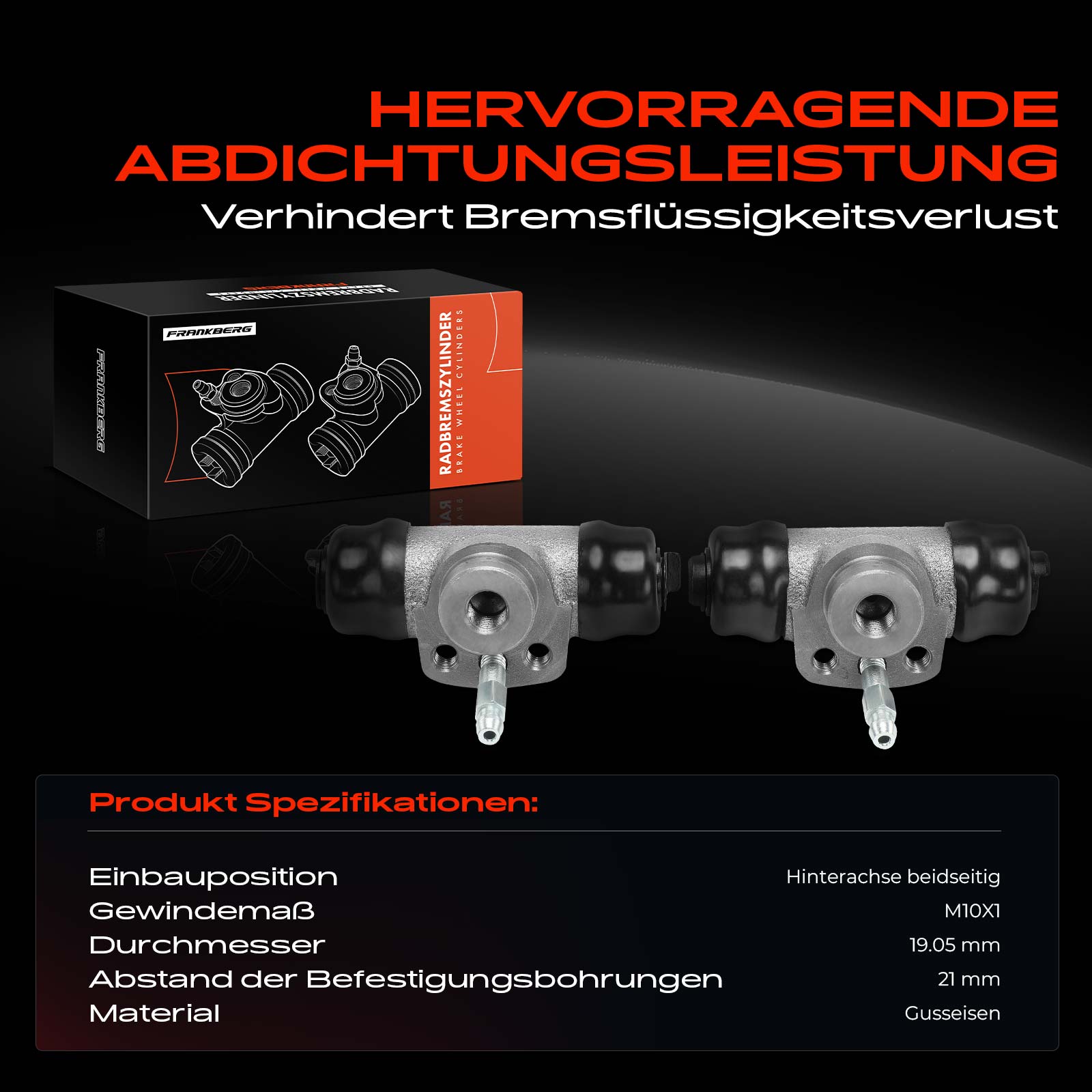 брой на дупките за закрепване: 2Отвор Ø: 15,87mmдоп. артикул/доп. инфо. 2: с обезвъздушаващ клапанматериал: чугунмярка на резбата: 1x M10x1.0разстояние между дупките за закр.: 21mmстрана на монтаж: задна осстрана на монтаж: на задната ос от двете страни