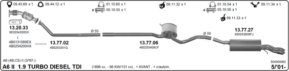 за номер на двигател: AVF,AWXизползва се в МПС с год. на производство до: 200512използва се в МПС с год. на производство от: 200105номер на шаси (VIN) до: >4B_5_050000норма за изгорелите газове: до Euro 3подходящ за тип МПС: комбиподходящ за тип МПС: лимузина