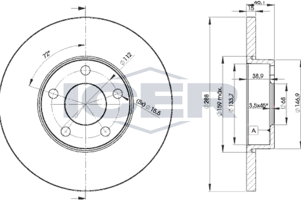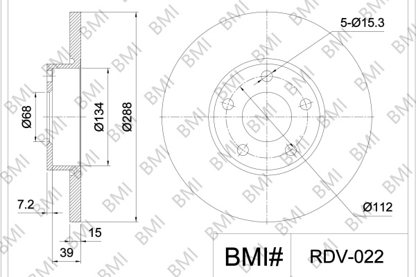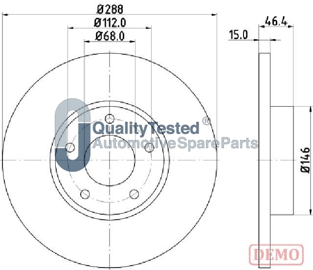 брой на дупките: 5вид на спирачния диск: плътенвисочина: 46,2mmвъншен диаметър: 288mmдебелина на спирачния диск: 15mmОтвор Ø: 15mmДиаметър на кръговата стъпка Ø: 112mmмин. дебелина: 13mmстрана на монтаж: предна осцентриращ диаметър: 68mm