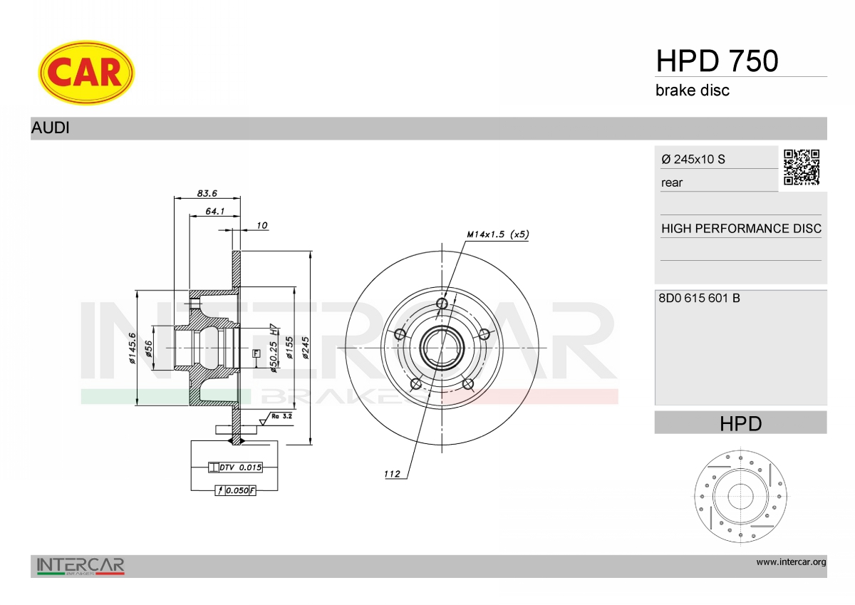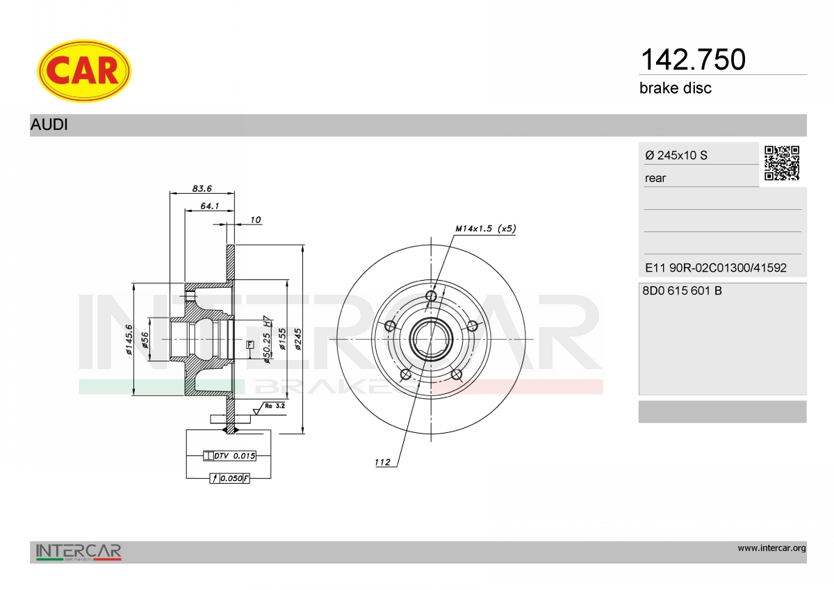 джанта: 5-дупкивид на спирачния диск: плътенвисочина 1: 64,5mmвисочина 2: 84mmвъншен диаметър: 245mmдебелина на спирачния диск: 10mmГлавина Ø: 145,5mmДиаметър на кръговата стъпка Ø: 112mmповърхност: с покритиестрана на монтаж: задна осцентриращ диаметър: 57mm
