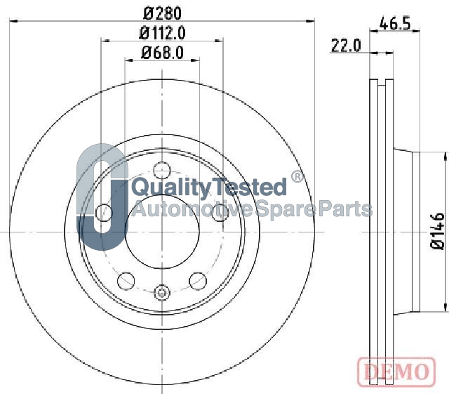 брой на дупките: 5вид на спирачния диск: вентилиранвисочина: 46,5mmвъншен диаметър: 280mmдебелина на спирачния диск: 22,2mmОтвор Ø до: 15,4mmДиаметър на кръговата стъпка Ø: 112mmмин. дебелина: 20mmповърхност: с покритиестрана на монтаж: предна остегло: 6,37kgцентриращ диаметър: 68mm