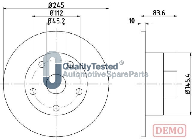 страна на монтаж: задна осджанта: 5-дупкивид на спирачния диск: плътенвисочина: 83,6mmвъншен диаметър: 245mmдебелина на спирачния диск: 10mmГлавина Ø: 145mmдоп. артикул/доп. инфо. 2: без сензорен пръстен за ABSДиаметър на кръговата стъпка Ø: 112mmмин. дебелина: 8mmцентриращ диаметър: 45,2mm