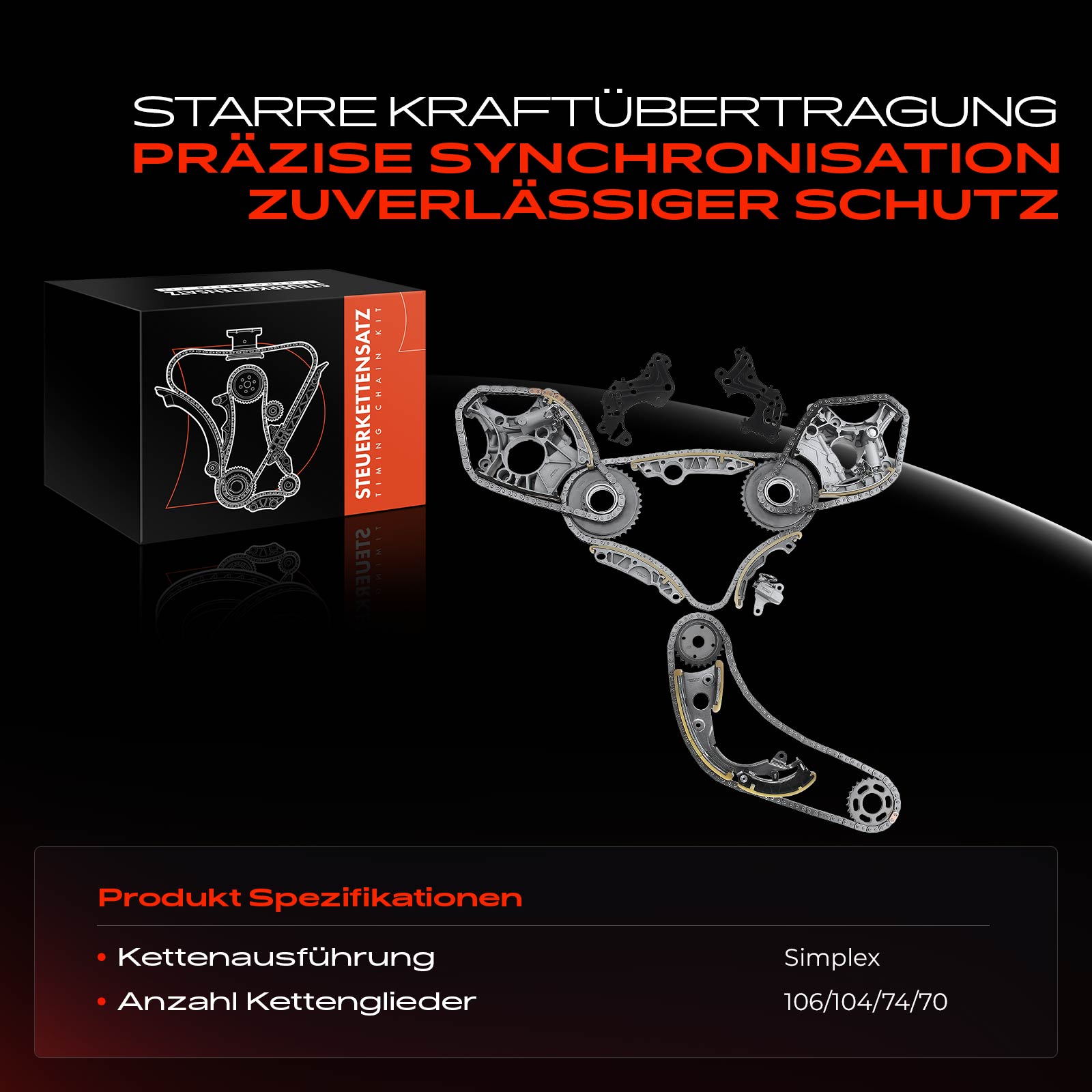 брой вериги: 3брой звена на верига: 106брой звена на верига: 70брой звена на верига: 74гаранция: 5 годишна гаранция или до 100 000кмдопълващ артикул /допълваща информация: Проверете зъбните колела за износване и евент. ги подменетедопълващ артикул /допълваща информация: с обтегач на веригатадопълващ артикул /допълваща информация: с плъзгачизпълнение /бид/ на веригата: верига затворенаизпълнение /бид/ на веригата: симплекс /за верига/