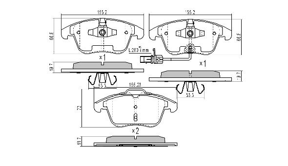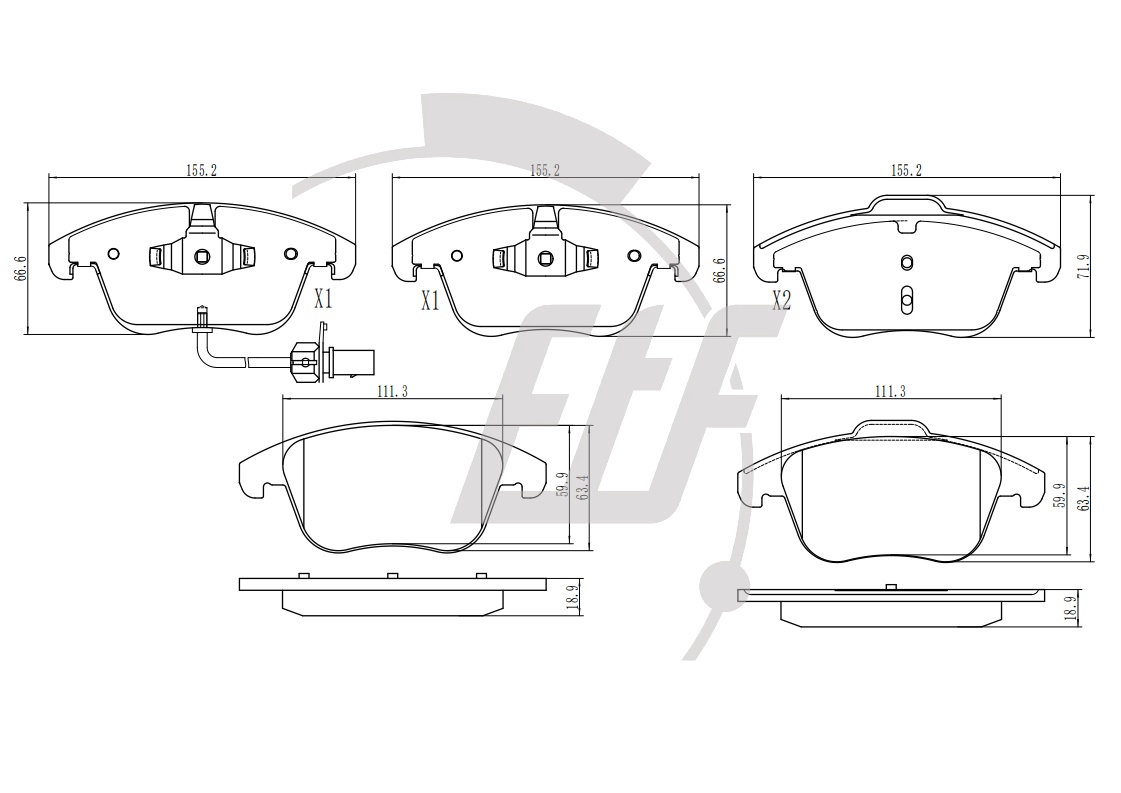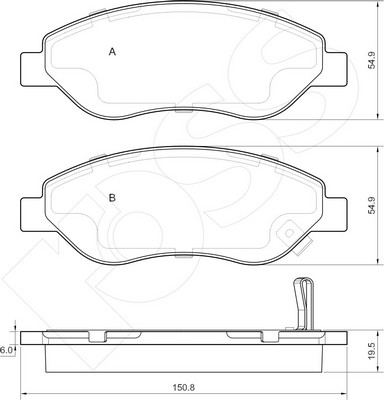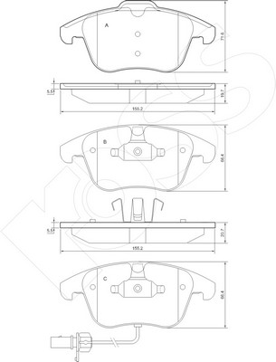Брой индикатори за износване: 1за освисочина 1: 72mmвисочина 2: 66,7mmдебелина 1: 19,8mmдебелина 2: 20,3mmза OE-номер: 8K0 698 151 Aограничение за производител: ATEстрана на монтаж: предна осширина: 155,2mm