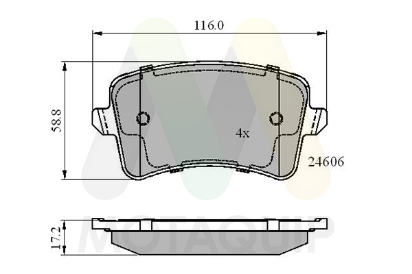 FMSI код: D1386-8494WVA-номер: 24606височина: 59mmдебелина: 17,4mmдоп. артикул/доп. инфо. 2: с винтоведоп. артикул/доп. инфо. 2: с ламарина против скърцанеконтролен знак за преглед: ECE-R90спирачна система: TRWстрана на монтаж: задна остегло: 1,375kgширина: 117mm