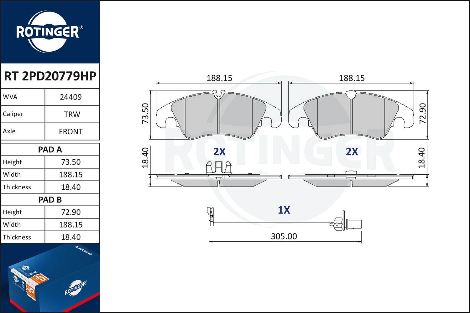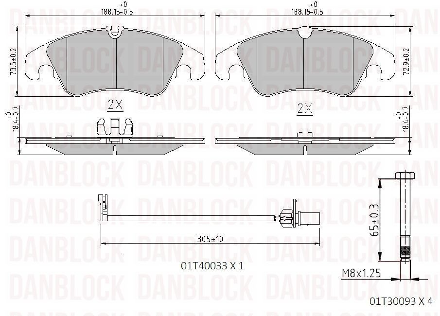 за PR-номер: 1LAстрана на монтаж: предна осБрой индикатори за износване: 1за освисочина: 73,5mmвисочина 2: 73mmдебелина: 19,2mmдължина на контактния датчик: 305mmконтролен знак за преглед: ECE R90спирачна система: Lucas / TRWширина: 188mm