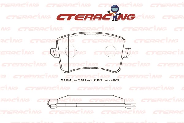 страна на монтаж: задна освисочина: 58,8mmдебелина: 17,5mmконтактен датчик за износване: не е за подготвен за предупредителен датчик за износванеограничение за производител: TRWширина: 116,4mm