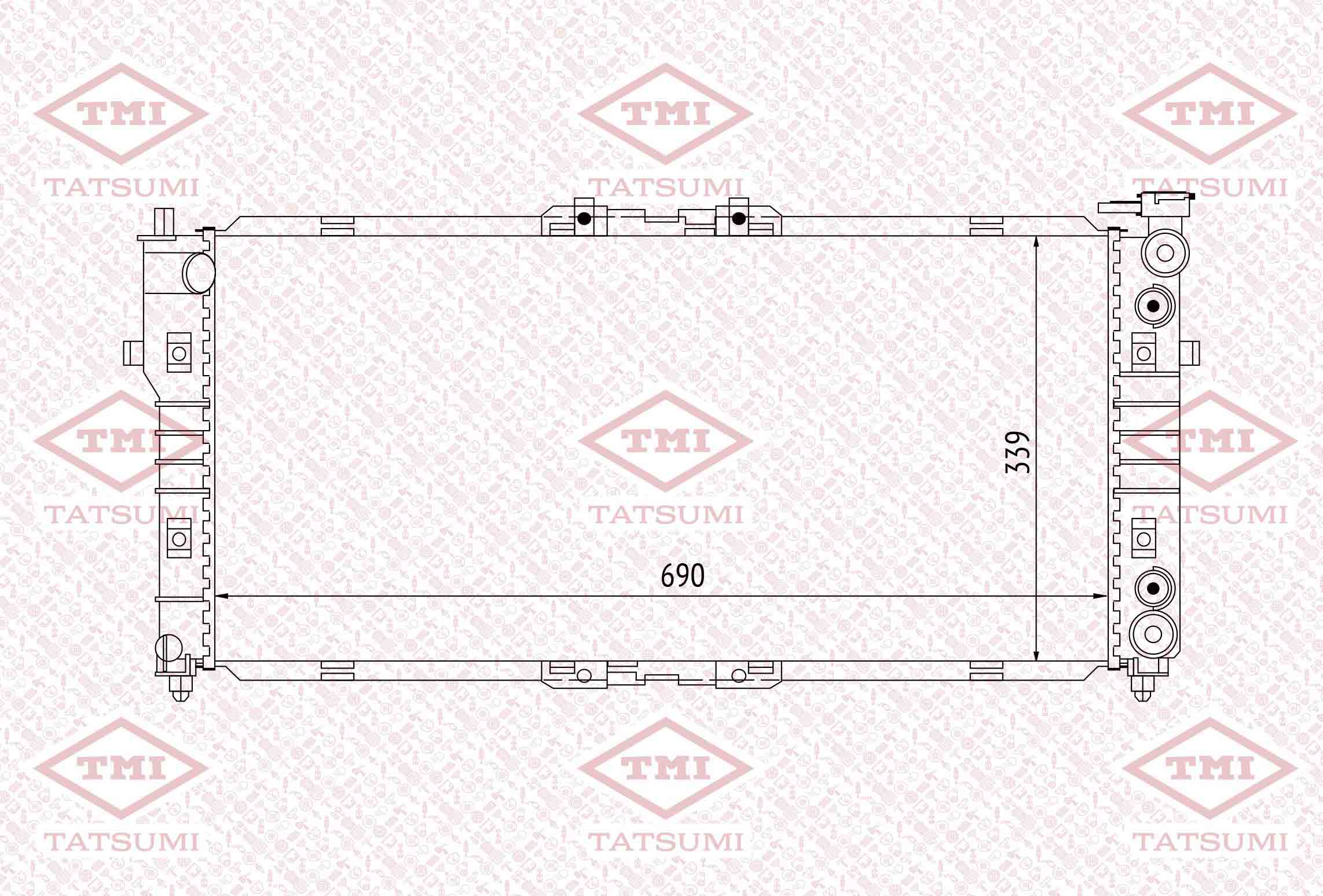 дълбочина на мрежа: 26mmдължина на мрежа: 690mmразмери на питата на радиатора: 690 x 339 x 26 mmширина на мрежа: 339mm