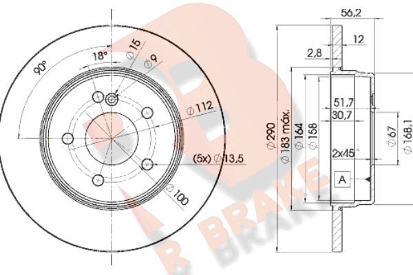 джанта: 5-дупкивид на спирачния диск: плътенвисочина: 55,2mmВисочина главина спирачен диск: 45,3mmвъншен диаметър: 290mmдебелина на спирачния диск: 10mmДиаметър на кръговата стъпка Ø: 112mmмин. дебелина: 8,3mmстрана на монтаж: задна осцентриращ диаметър: 67mm