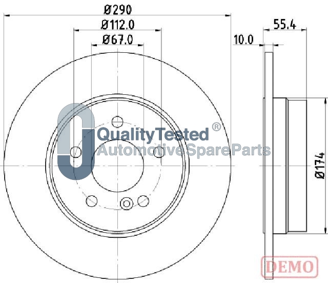 страна на монтаж: задна осброй на дупките: 1брой на дупките: 5вид на спирачния диск: плътенвисочина: 55,4mmвъншен диаметър: 290mmдебелина на спирачния диск: 10mmДиаметър на кръговата стъпка Ø: 112mmмин. дебелина: 8,3mmповърхност: с покритиецентриращ диаметър: 67mm