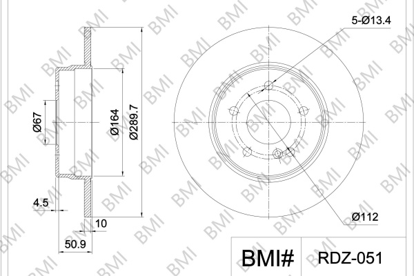 страна на монтаж: задна осброй на дупките: 5вид на спирачния диск: плътенвисочина: 55,5mmвъншен диаметър: 290,0mmвътрешен диаметър: 164,0mmдебелина на спирачния диск: 10,0mmОтвор Ø: 13,3mmДиаметър на кръговата стъпка Ø: 112,0mmмин. дебелина: 8,3mmцентриращ диаметър: 67,0mm