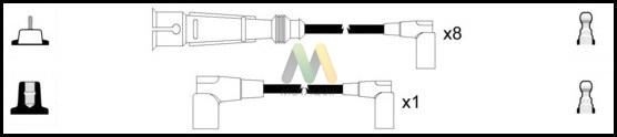 брой проводи: 9версия: DIN/ISO:Dдистрибутор на запалването/ палец: тип на връзка SAEдължина 1: 1008mmдължина 2: 768mmДължина 3: 768mmДължина 4: 768mmДължина 5: 768mmДължина 6: 768mmдължина 7: 768mmдължина 8: 1008mmзапалителна бобина: изпълнение на конектор DINзапалителна свещ: тип на връзка M4