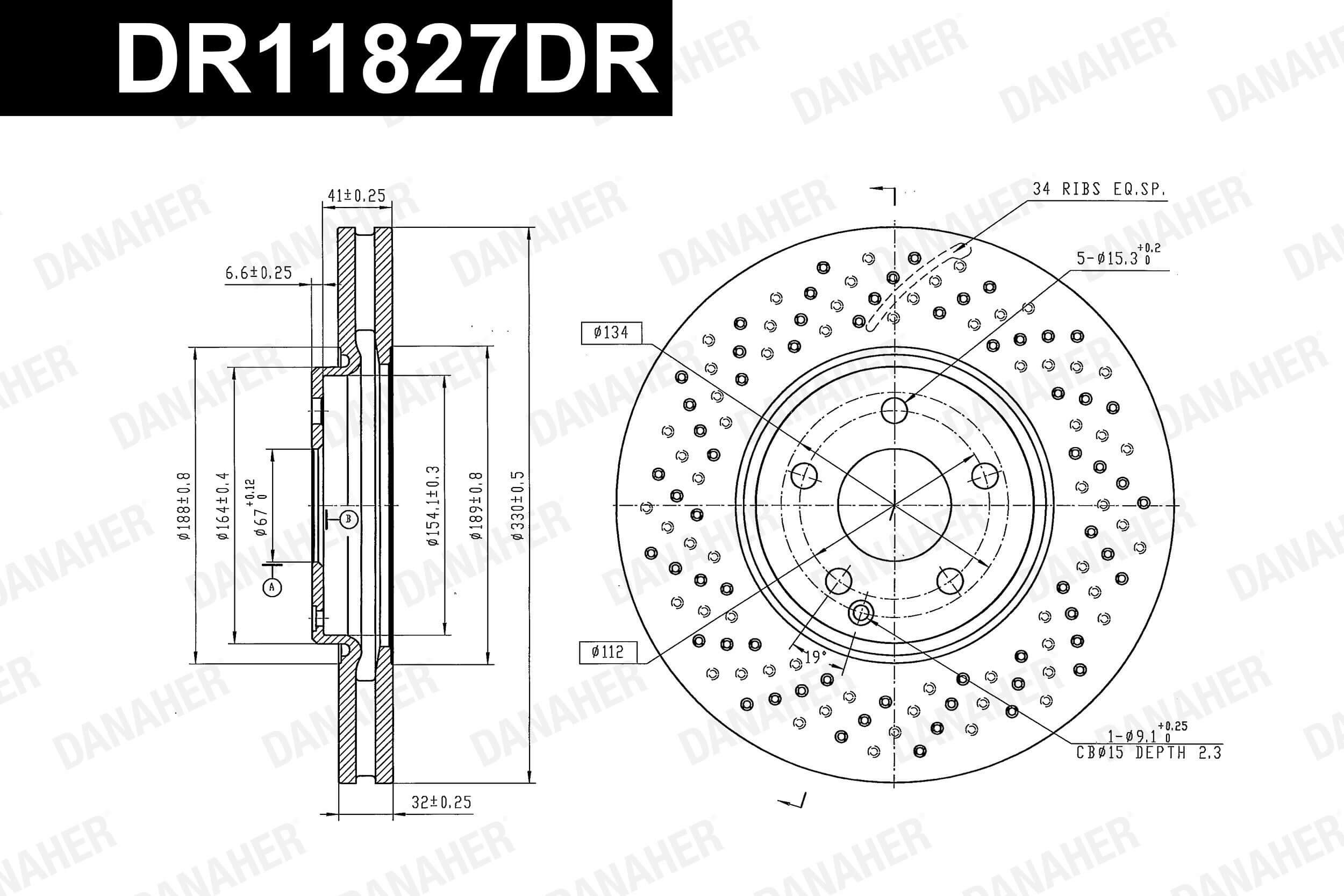 страна на монтаж: предна осджанта: 5-дупкивид на спирачния диск: перфориран/с вътрешно вентилираневисочина: 47,5mmвъншен диаметър: 330mmдебелина на спирачния диск: 32mmГлавина Ø: 164mmДиаметър на кръговата стъпка Ø: 112mmмин. дебелина: 30mmповърхност: с покритиетегло: 11,56kgцентриращ диаметър: 67mm