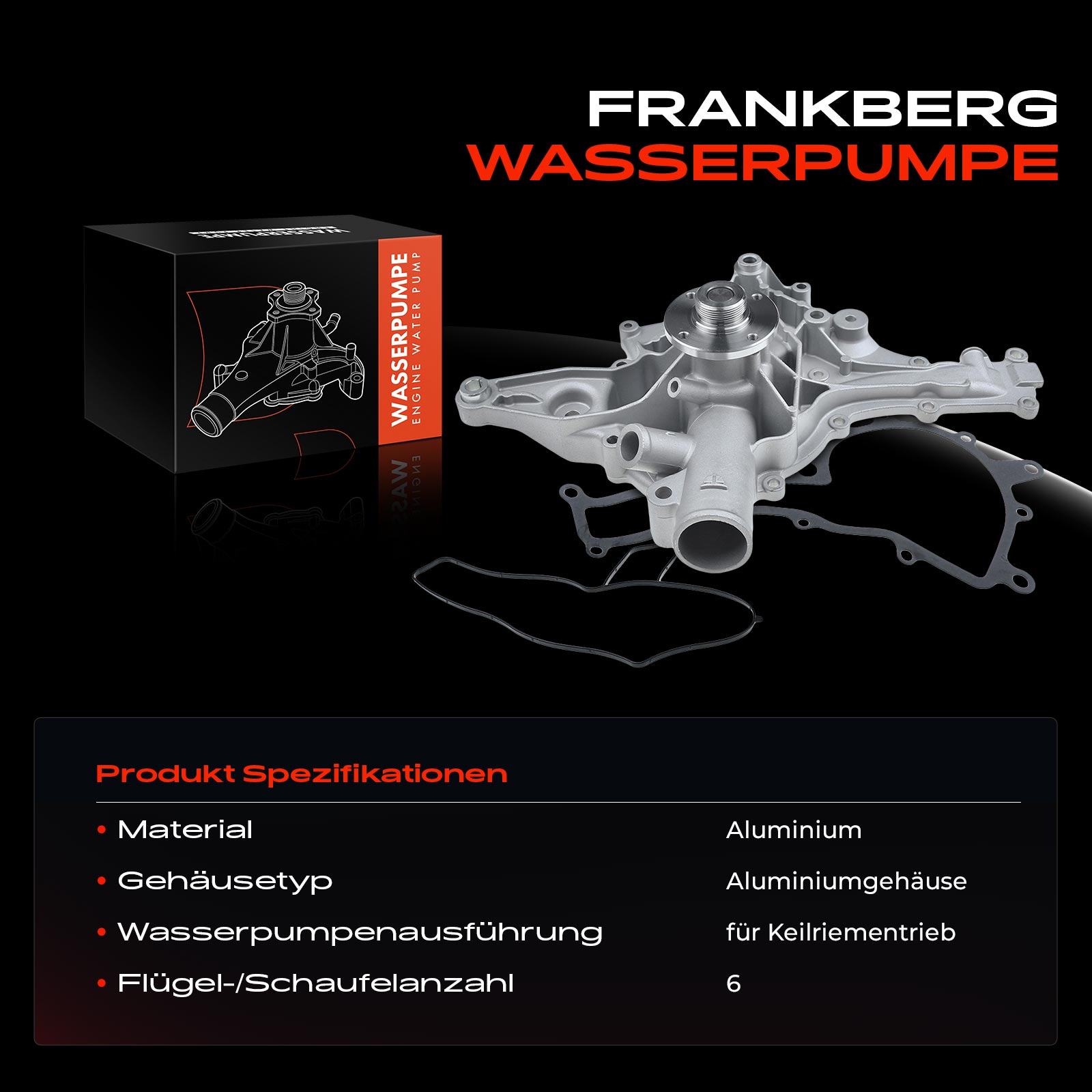 брой крила/лопатки: 6вид водна помпа: за задвижване с клиновиден ремъкдопълващ артикул /допълваща информация: с уплътненияматериал на корпуса: алуминийматериал на перката на водна помпа: стоманатип на корпуса: корпус с алуминиев капак
