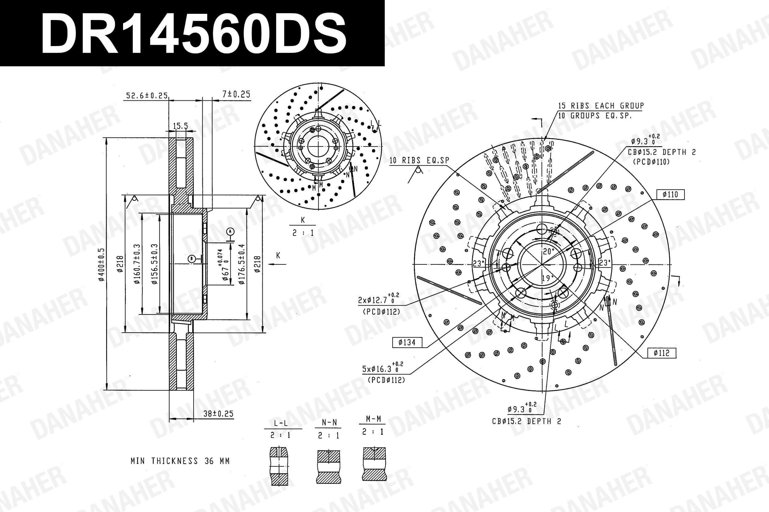 брой на дупките: 9вид на спирачния диск: вентилиранвисочина: 60mmвъншен диаметър: 400mmдебелина на спирачния диск: 38mmдебелина от: 36mmДиаметър на кръговата стъпка Ø: 112mmстрана на монтаж: предна осцентриращ диаметър: 67mm