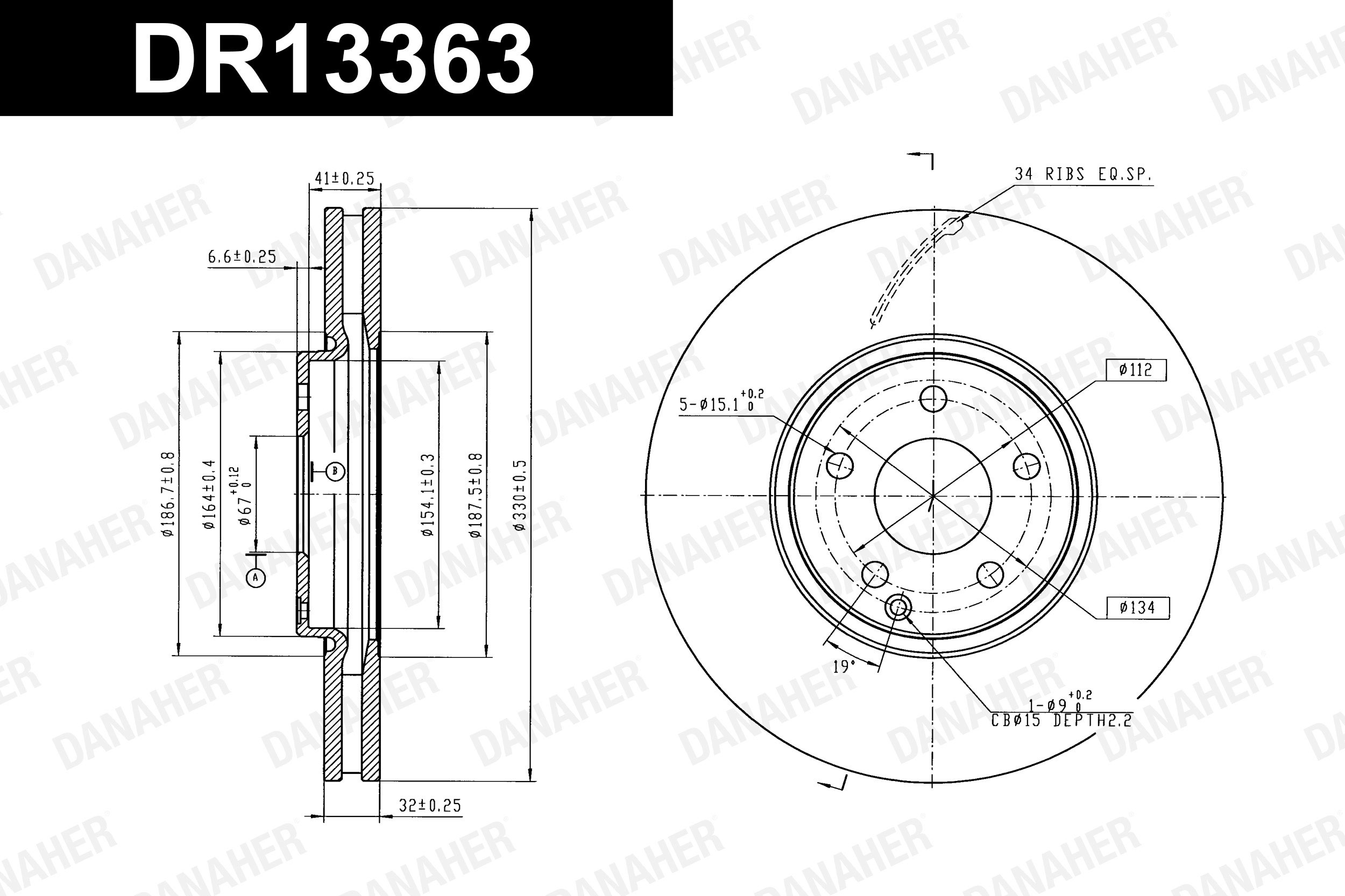 обурудване на автомобила: за автомобили със спортен пакетджанта: 5-дупкивид на спирачния диск: перфориран/с вътрешно вентилираневисочина: 64,5mmВисочина главина спирачен диск: 32,5mmвъншен диаметър: 330mmдебелина на спирачния диск: 32mmДиаметър на кръговата стъпка Ø: 112mmмин. дебелина: 30mmстрана на монтаж: предна осцентриращ диаметър: 67mm