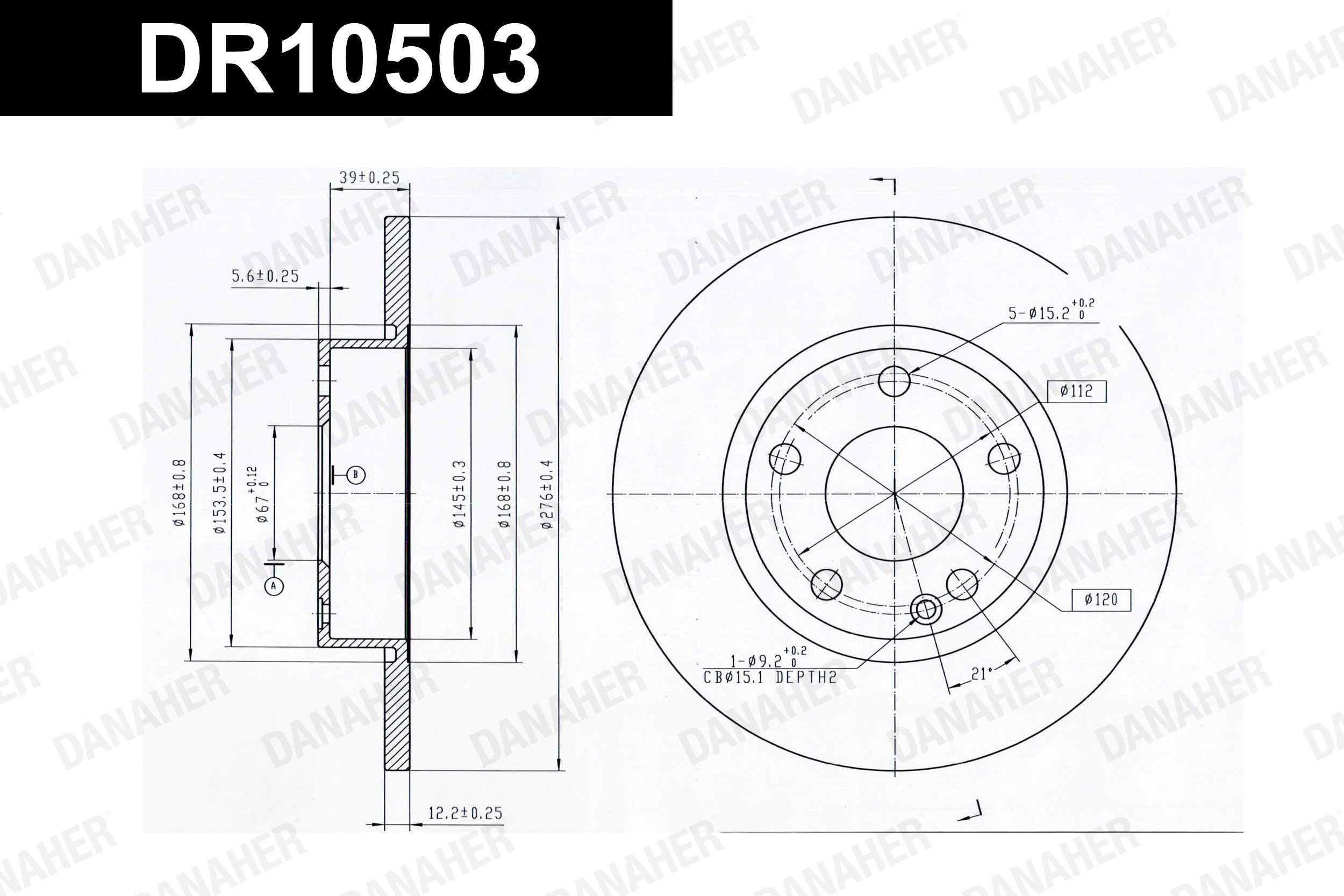 брой на дупките: 5вид на спирачния диск: плътенвисочина: 44,5mmвъншен диаметър: 276mmвътрешен диаметър: 145mmдебелина на спирачния диск: 12mmДиаметър на кръговата стъпка Ø: 112mmмин. дебелина: 10mmмярка на резбата: 15,3повърхност: галванизиранстрана на монтаж: предна остегло: 4,6kgцентриращ диаметър: 67mm