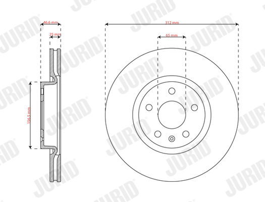 страна на монтаж: предна освид на спирачния диск: вентилиранвисочина: 46,5mmвъншен диаметър: 312mmдебелина на спирачния диск: 25mmцентриращ диаметър: 65mm