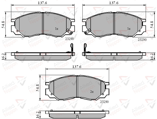 страна на монтаж: предна осWVA-номер: 23290дебелина: 16,2mmдължина: 137,6mmконтактен датчик за износване: с акустично предупреждение за износванеспирачна накладка: със скосен кантспирачна система: Akebonoширина: 54,8mm