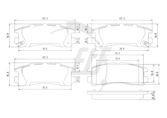 страна на монтаж: задна освисочина: 41mmдебелина: 15,5mmконтактен датчик за износване: с акустично предупреждение за износванеконтролен знак за преглед: E9 90R 01120/233ограничение за производител: AKEBONOширина: 107,8mm