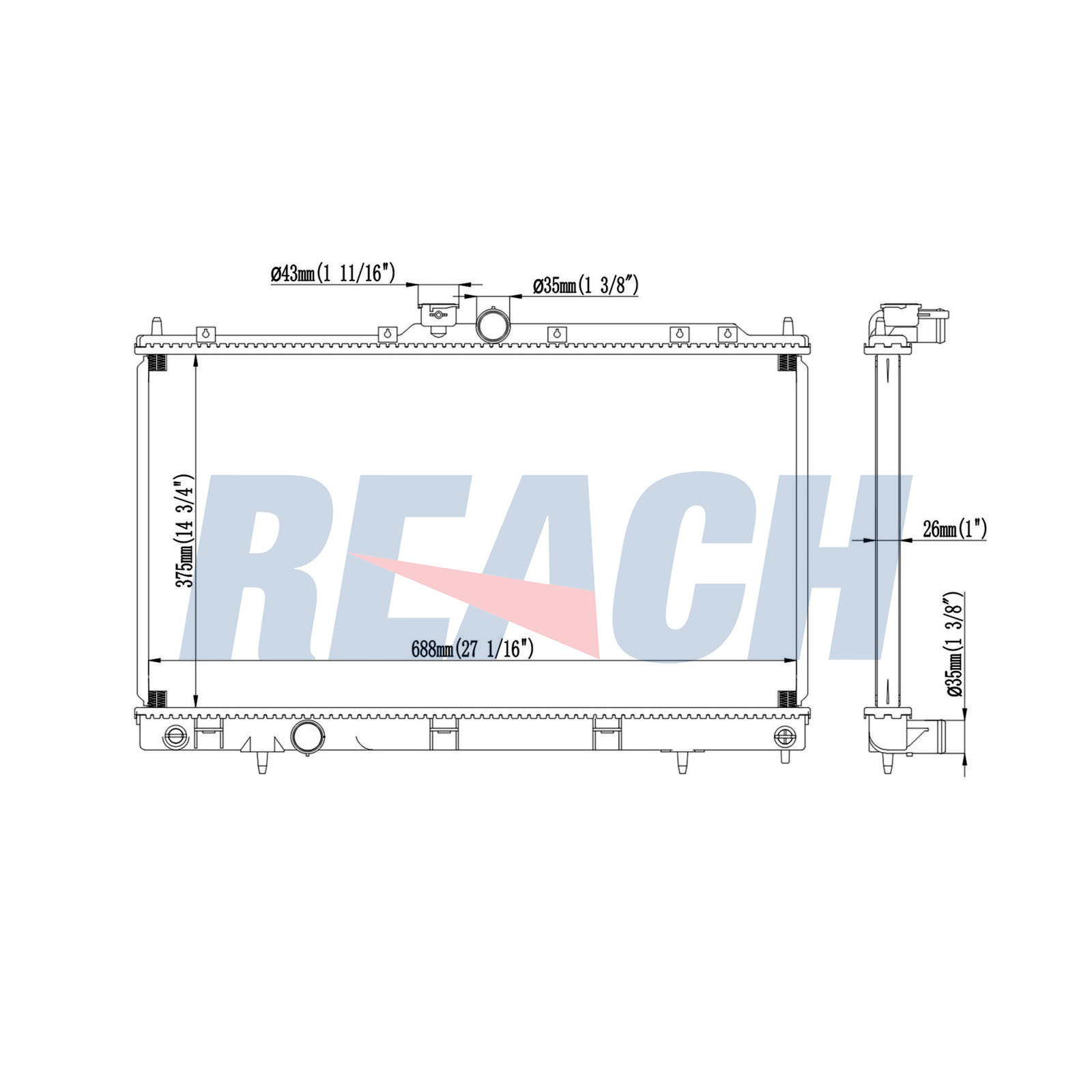 доп. артикул/доп. инфо. 2: без капачкадоп. артикул/доп. инфо. 2: без рамкадълбочина на мрежа: 26mmдължина на мрежа: 375mmизпълнение на охладител: запоени охлацдащи ламелиматериал: алуминийматериал на ламелите на радиатора: алуминийматериал на резервоар (охладител): пластмасаширина на мрежа: 688mm