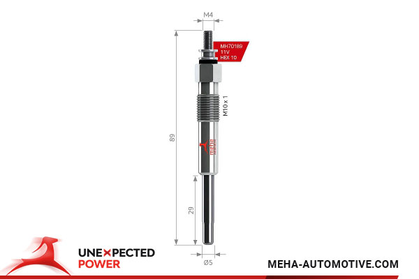 монтажна дълбочина: 29,5mmдължина: 90mmнапрежение: 11волтизпълнение на подгревните свещи: с последващо подгряванеразмер външна резба: M10 x 1размер на ключ: 10тегло: 0,03kg