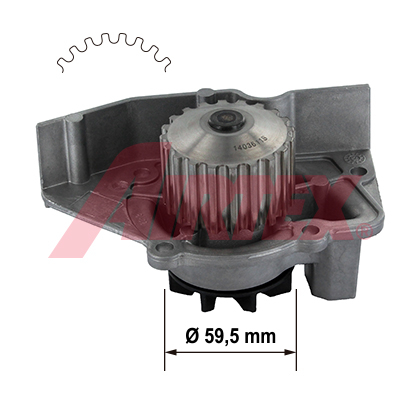 брой крила/лопатки: 6вид водна помпа: за задвижване със зъбен ремъквид на експлоатация: механиченРаботното колело Ø: 58mmРемъчна шайба на водната помпа Ø: 59,3mmдопълващ артикул /допълваща информация: с уплътнение