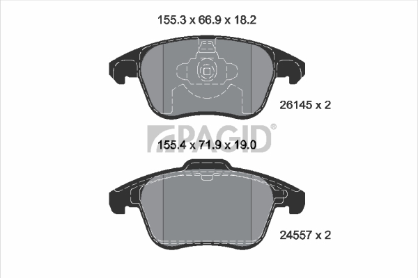 височина: 155,2mmвисочина 2: 155,2mmдебелина: 19mmстрана на монтаж: 1. преден мостширина 1: 71,9mmширина 2: 66,7mm