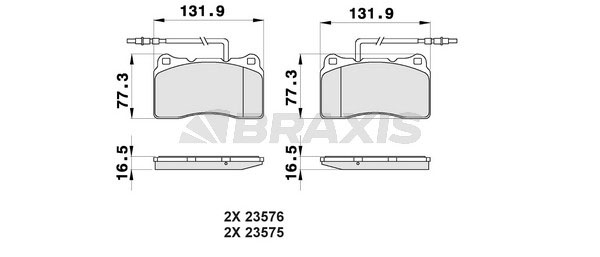 страна на монтаж: предна осWVA-номер: 23575WVA-номер: 23576Брой индикатори за износване: 4за освисочина 1: 77,2mmдебелина: 15,7mmдължина: 131,8mmспирачна система: Brembo