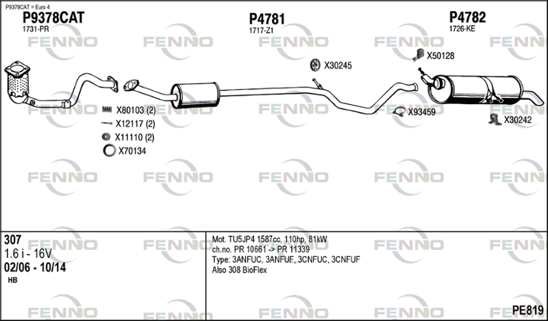 година на производство до: 200812година на производство от: 200104код на двигателя: NFU (TU5JP4)степен на стандарта за отработени газове: E3