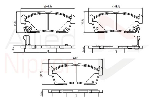 страна на монтаж: предна осБрой индикатори за износване: 2за освисочина 1: 42,1mmдебелина: 14,6mmконтактен датчик за износване: с акустично предупреждение за износванеспирачна система: Akebonoширина 1: 108,5mm