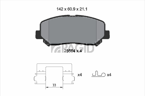 WVA-номер: 25564височина: 61mmдебелина: 21mmдължина: 142mmконструкция на спирачките: дискови спирачкистрана на монтаж: предна ос