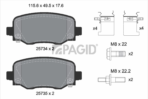 страна на монтаж: задна осБрой индикатори за износване: 4за освисочина: 49,5mmдебелина: 17,6mmширина: 115,7mm