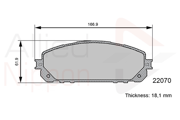 страна на монтаж: предна осWVA-номер: 22070дебелина: 18,1mmдължина: 166,9mmконтактен датчик за износване: без предупредителен контактен датчикспирачна система: ADVICSширина: 61,9mm