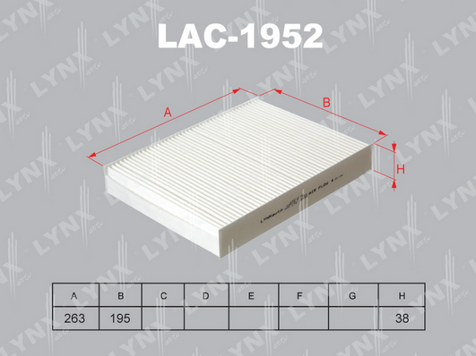 височина: 38mmдължина: 263mmизпълнение на филтъра: поленов филтърширина: 195mm