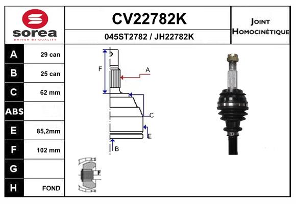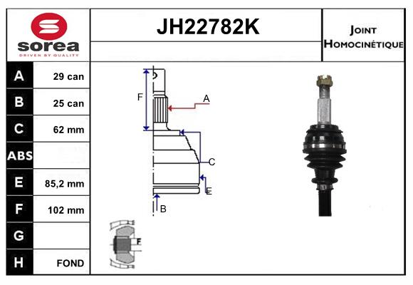 тип на трансмисията: 17вид на шарнира: сферично каре (за предаване на постоянно движение)външни зъби от страна на колелото: 29вътрешни зъби от страната на колелото: 25диам. на гарн.: 62mmтриподна ролка-диаметър: 84mmдължина: 159mmМатериал маншон: NBR (Нитрил-Бутадиен-Каучук)мярка на резбата: M24x1.50страна на монтаж: на предната ос отдяснострана на монтаж: на предната ос отлявострана на монтаж: от страната на колелото