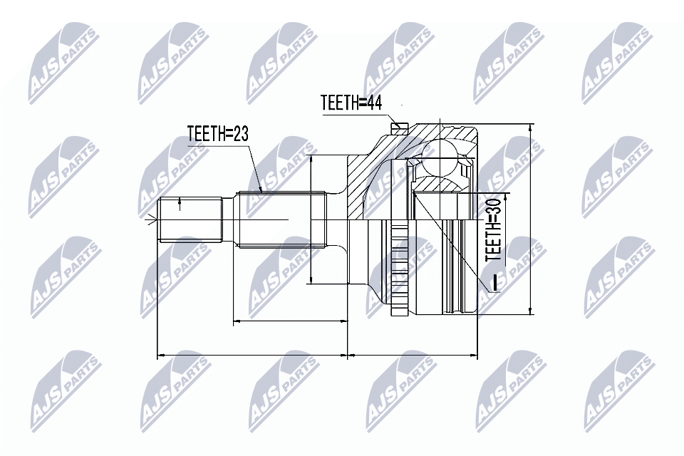 тип на трансмисията: 1брой на зъбите на ABS-пръстен: 44външни зъби от страна на колелото: 23вътрешни зъби от страната на колелото: 30спирачна/динамика на движение: за автомобили с ABSстрана на монтаж: от страната на колелото
